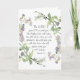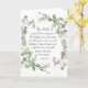 Inspirational scripture greeting card depicts floral watercolor wildflowers in soft colours of dusty purple, pink, and soft green shades. It features Bible Verse Zephaniah 3:17, "The LORD your GOD in your midst, The Mighty One, will save; He will take great delight in you, He will quiet you with His love, He will rejoice over you with singing."~