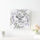 Inspirational scripture wall clock depicts floral watercolor wildflowers in soft colors of dusty purple, pink, and soft green shades. It features a portion of Bible Verse Zephaniah 3:17, "The LORD your GOD, The Mighty One, will save, He will rejoice over you with singing."*