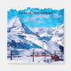 Colourful and customisable Zermatt switzerland watercolor painting on a Magnet showcasing the breathtaking winter scenery of the swiss travel destination in the swiss alps. Makes a wonderful gift for every tourist of this popular european travel destination. Make it your own and purchase now as a travel souvenir.