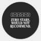 Zero Stars Would Not Recommend Humor Funny Sarcast Classic Round Sticker