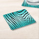 Zesty Zebra Cyan Square Paper Coaster