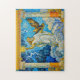 Zeus with Eagle and Lightning in Temple Gate Among Jigsaw Puzzle