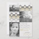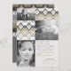 This modern chic graduation party invite / graduation photo announcement design features a stylish and trendy flat gold, silver, grey/grey, black and white checked chevron / zig zag pattern with 3 photo collage on the front and your grad party event details on the back of the card.