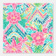 A seamless preppy pattern featuring minty green and pink zigzags, along with pink flowers with green leaves, on a minty green background. The design combines bold geometric elements with charming florals to create a fresh and stylish effect.