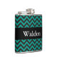 The flask itself is fine. It’s a cheap flask, obviously bought in bulk, however am prepared to overlook that. Given that it is a personalized item, I would have liked to have seen gift boxing instead of the generic packaging. Terrible printing, and/or quality. It’s a cheap, tacky vinyl. It is not cut straight and is also applied in a way that it is overhanging the bottom, causing the glue to catch on items and it will eventually roll and tear, damaging the wrap.