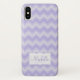 Modern zig zag patterned iphone cover in purple and grey hues. Customise this bold patterned iphone case cover with your name and your family initial or monogram. Currently reads Michelle R. Ideal personalised gift for girls and women. Design by Sarah Trett for www.mylittleeden.com