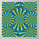 Zigzag-patterned wheels rotate in opposite directions in this fascinating hypnotic and psychedelic poster image of the illusory motion variety. You won't believe your eyes!