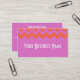 A distinctive business card for many types of business, with a chevron pattern of Magenta Pink and Brilliant Orange zigzags and white lettering. Ready for you to personalise.