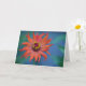 This note-card features an interesting squiggly zinnia against a gorgeous blue and green background!