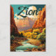 Zion National Park Illustration Retro Postcard