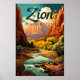 Zion National Park Illustration Retro Poster