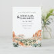 This wedding invitation features a painting of the red rocks in Zion National Park landscape view, vintage style.