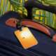 I was happy with the acrylic tag but it came with a thin leather strap to attach the tag to luggage (like a cat collar). I replaced the strap with a metal ring off of a key ring as the leather strap would come undone or break easily as luggage is sometimes handled without much care by airlines. Printing is great. Colours and positioning of the design I put on the tag were perfect. Very pleased.
