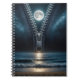 A bright full moon emerges from the unzipping of the night sky, casting a gentle glow over the tranquil ocean below