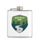 The flask itself is fine. It’s a cheap flask, obviously bought in bulk, however am prepared to overlook that. Given that it is a personalized item, I would have liked to have seen gift boxing instead of the generic packaging. Terrible printing, and/or quality. It’s a cheap, tacky vinyl. It is not cut straight and is also applied in a way that it is overhanging the bottom, causing the glue to catch on items and it will eventually roll and tear, damaging the wrap.