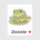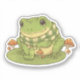 Adorable illustration of Zochi the cosy frog enjoying Pip the caterpillar in a peaceful forest setting, surrounded by mushrooms, lily pads, and soft warm tones. Perfect for nature lovers and cosy aesthetic fans.