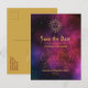 Stunning New Age theme Gemini/Gemini astrology Save the Date Announcement Postcard with celestial burgundy purple background & mustard gold mystical font typography details which you can customise easily via the Zazzle edit menu. A unique design for the modern couple who likes to be on trend, but with an original approach. All star sign combinations and/or alternative background available on email request: juneleijon7@gmail.com