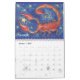 2014 Calendar featuring beautiful coloured pencil and ink drawings of the signs of the zodiac. JANUARY - Aquarius, the water-carrier, pours out stars and water from a jug . Air sign, January 21 - February 19. FEBRUARY - Pisces, the fish, swimming in a star-filled river. Water sign, February 20 - March 20. MARCH - Aries, the ram, stands against a night sky filled with golden stars. Fire sign, March 21 - April 20. APRIL - Taurus, the bull, stands against a sky filled with shining stars. Earth sign, April 21 - May 21. MAY - Gemini, the twins, gazing at the star-filled heavens.Air sign, May 22 - June 21. JUNE - Cancer, the crab, walks on a beach covered with stars. Water sign, June 22 - July 23. JULY - Leo, the lion, catches falling stars. Fire sign, July 24 - August 23. AUGUST - Virgo, the virgin, picks star-shaped fruit from the trees. Earth sign, August 24 - September 23. SEPTEMBER - Libra, the scales, balances bowls filled with stars and clouds. Air sign, September 24 - October23. OCTOBER - Scorpio, the scorpion, is surrounded by shining stars. Water sign, October 24 - November 22. NOVEMBER - Sagittarius, the archer, stands against a sky filled with shining stars. Fire sign, November 23 - December 21. DECEMBER - Capricorn, the goat, grazes in a star-covered meadow. Earth sign, December 22 - January 20. Please note that the dates can vary from year to year. Images created from original drawings by Jess Perry.