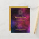 Stunning New Age zodiac theme Cancer united with Aquarius Save the Date Announcement Postcard with celestial burgundy purple background, incorporating a touch of faux gold glitter, plus festive font mustard yellow typography details which are easy to fully customise with your own text. A uniquely elegant New Age design for the modern couple who likes to be on trend, but with an original approach. All star sign combinations available on email request to: juneleijon7@gmail.com