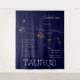 Zodiac Constellation Taurus. The colour of the stars is roughly real. Star and space objects' names. In Greek mythology, Taurus is a bull, the transfiguration of Zeus to abduct a beautiful Europe. Hyades were a nymph sisterhood that brings rain. The Pleiades or Seven Sisters were the seven daughters of the titan Atlas and the sea-nymph Pleione. They were teachers of the Dionysus and were associated with rain. Taurus is a zodiac constellation. The Sun is in Taurus from about April 20 until about May 21. Unique, one-of-a-kind, romantic tapestry for anyone. Customisable. You can change or delete the template name "Elizabeth's stars" and the template text "From which stars have we fallen to meet each other here? - Friedrich Nietzsche". You can transfer this design to a variety of other products. Do not forget to use the "Personalise", or "Edit Design" (as the case may be) button, or the blue link "Details"--> "Click to customise further". It will transfer you to the "Designer Tool" area where you can use the "FILL/FIT" option to ADJUST THE DESIGN TO THE SIZE AND SHAPE of the product, to rotate it, to change the position, type, colour of the font, or to add your own text from the scratch. You can also change the colour of the background. Just be creative, customise one, buy, enjoy, and be happy.