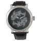 an abstract black and white zodiac tattoo design of two fish swimming in circles on a black watch