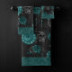 Zodiac Magic | Dark Teal Green Gothic Skull Roses Bath Towel Set