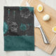Zodiac Magic | Dark Teal Green Gothic Skull Roses Tea Towel