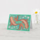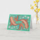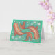 Pisces, the fish, swimming in a star-filled river. Water sign, February 20 - March 20 (there may be a variation in the dates). Greetings card with an orange, blue and green customisable design for you to personalise with your own text, images and ideas. An original coloured pencil and metallic ink drawing by Jess Perry.