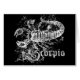 These t-shirts and other items are printed with an image of the zodiac sign Scorpio with a worn and grungy texture.