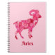 Notebook in the symbol for the astrological sun sign Aries, in a fractal swirl pattern of deep coral red and coral pink