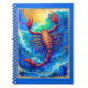 Notebook in an illustration of the water sign Scorpio showcasing a vivid red scorpion emerging from swirling ocean waves, symbolising emotional depth and resilience. The swirling blues and fiery colours reflect Scorpio’s passion and mystery.