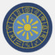 Zodiac Sun Wheel+Astrological Symbols Gold+Blues Classic Round Sticker