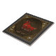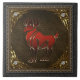 We are proud to offer this high quality decorative tile featuring the first sign of the Zodiac: Aries. This magnificent symbol is depicted with carved gold and embossed jewelled red lacquer against a leather background. The four suns struck in gold represent the totality of the seasons, each depicts an embedded Aries birthstone: diamond.
