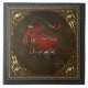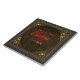 We are proud to offer this high quality ceramic tile featuring the fifth sign of the Zodiac: Leo. This magnificent symbol is depicted with carved gold and embossed jewelled red lacquer against a leather background. The four suns struck in gold represent the totality of the seasons. At the centre of each sun is the embedded Leo birthstone: peridot (depicted).