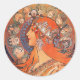 Woman's profile with zodiac signs behind her. Painted image from the Art Nouveau era. Alfons Mucha, artist.