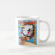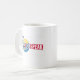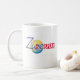 Zoe the Bilingual Dog loves to go for car rides. In the original collage by ZoeSPEAK on this Mug, we see Zoe showing us, in English and French, a speedometer, with a little yellow car driving by against a blue sky background.