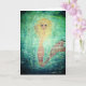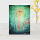 This card portrays a whimsical mermaid floating upright in the deep, perfectly poised as she pears outward. A fun card to give to the young, and the young at heart;- especially if they have a weakness for lovely sea creatures, and timeless myths.