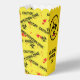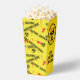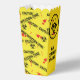 Zombie horror movie night popcorn box yellow CAUTION INFECTION ZONE tape, blood spatters and biohazard symbols. The text reads WARNING DO NOT EAT and MAY CONTAIN BRAINS. This text is customisable so you can change them if you prefer