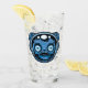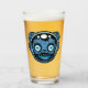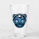 Vector cartoon illustration of a zombie astronaut with big eyes wearing a space helmet with a cracked glass shield in shades of blue. Tags: astronaut, cosmonaut, helmet, zombie, space, spaceman, monster, cadet, corpse, dead