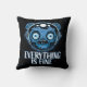 Vector cartoon illustration of a zombie astronaut with big eyes wearing a space helmet with a cracked glass shield in shades of blue with Everything Is Fine text. Tags: astronaut, cosmonaut, helmet, zombie, space, spaceman, monster, cadet, corpse, dead