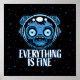 Vector cartoon illustration of a zombie astronaut with big eyes wearing a space helmet with a cracked glass shield in shades of blue with Everything Is Fine text. Tags: astronaut, cosmonaut, helmet, zombie, space, spaceman, monster, cadet, corpse, dead