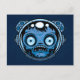 Vector cartoon illustration of a zombie astronaut with big eyes wearing a space helmet with a cracked glass shield in shades of blue. Tags: astronaut, cosmonaut, helmet, zombie, space, spaceman, monster, cadet, corpse, dead