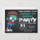 Invite your guests with this cool Halloween birthday party invitation featuring a funny cartoon zombie with modern typography against a dark steel background. Simply add your event details on this easy-to-use template to make it a one-of-a-kind invitation.