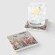 The coasters are gorgeous, a quality feel and heavy weight. They look like a precious archeological find. A rustic stone juxtaposed with a modern floral black and white print. I like the way the print goes slightly imperfect on the cut stone edges giving them a kind-of natural beauty.