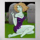 my lovely zombie chick. the names on the headstones are an homage to two rad zombie movie characters, ash from evil dead and lionel from dead alive.