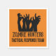 Fun and festive, these napkins are the perfect way to keep your party guests clean this Halloween season.  The design features a bunch of zombie hands reaching up and the text "zombie hunters" in black with an orange background which can be changed.  Happy Halloween.