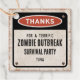 Vintage look thank you favour tag for a zombie outbreak-themed party.
