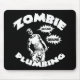 Logo design for fake, non-existent plumbing company, "Zombie Plumbing." Text with b/w drawing of a zombie plumber, saying, "Drains! DRAINS!" T-shirts, novelties, gifts.