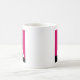 Personalised coffee mug with a cool zombie creature. Pink and black bold vibrant colour scheme. A zombie silhouette with arms outstretched on the hunt for brains. A big white moon illuminates from behind.