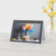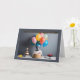 The front of this boy's birthday card has a spooky and whimsical monster theme, perfect for a young fan of fun, slightly eerie celebrations. At the centre of the design is a cartoonish, zombie-like boy with blue hair, large red eyes, and a blank expression, making the image playful rather than frightening. The character is surrounded by a cluster of brightly coloured balloons in shades of pink, yellow, orange, blue, and green, creating a fun contrast to the character’s spooky appearance.